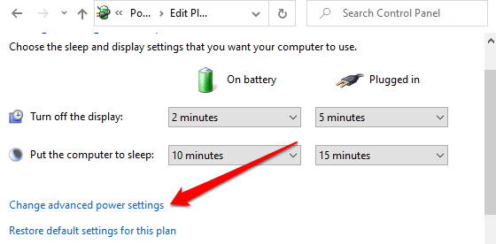 - Select Change advanced power settings. That will open a new “Power Options” window.