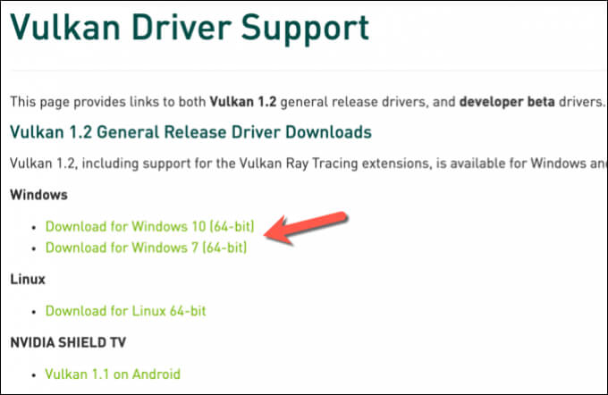You can download the stable, general release drivers, or you can try the newer beta drivers, but these may come with bugs and other issues. Once the installer file is downloaded, run it and follow any on-screen instructions to install VulkanRT on your PC. You’ll need to restart your PC once the driver is installed.