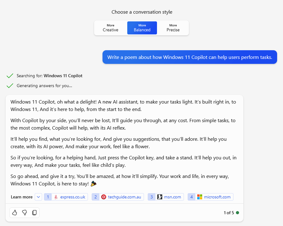 Let’s take a look at the various tasks you can perform with the Windows 11 Copilot: