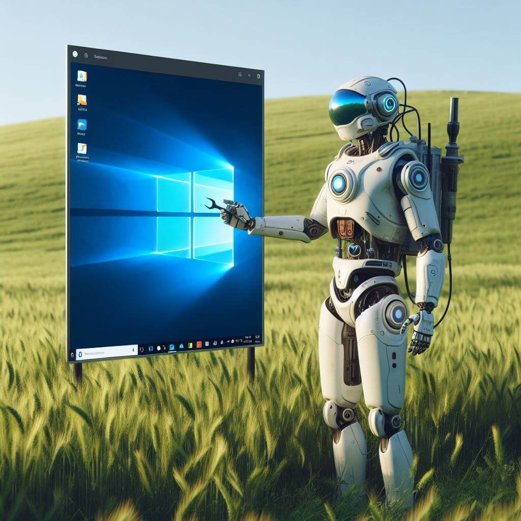 Here’s an image that Copilot created from the prompt, “Generate an image of Windows 11 Copilot as a robot standing in a field.”