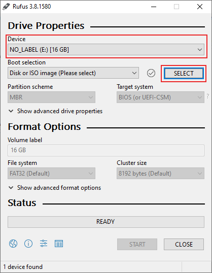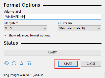 - Once you select your ISO file, Rufus will automatically configure to match the most appropriate settings for it. Once you’re ready to begin flashing, click START at the bottom.