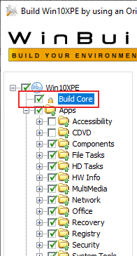 - You’ll also need to modify the **Build Core **configuration. This sets various settings, like keyboard layout and locale, for your WinPE build. Click on Build Core in the left-hand side menu.