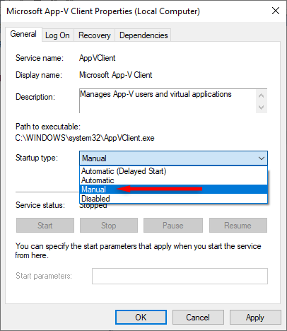 Note: If disabling the App-V Client negatively affects your user experience, you can re-initiate it by going through the steps above and selecting Automatic under “Startup type,” then restarting your PC.
