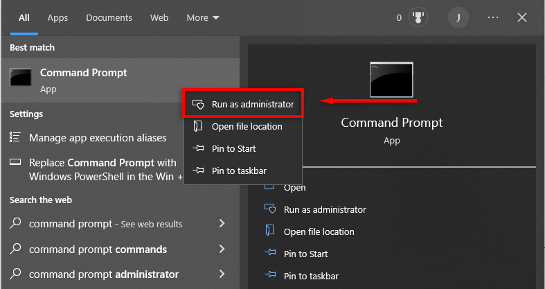 - Right-click Command Prompt and select Run as Administrator. Click Yes to confirm.