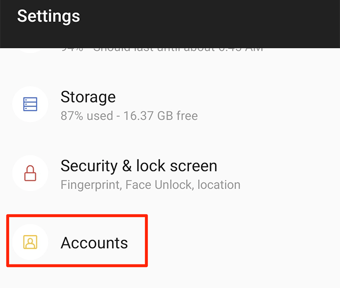 - Launch the Settings app on your Android device and tap Accounts.