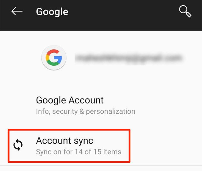 - Choose your Google account from the list on your screen. * Tap the **Account sync** option to view your sync settings.