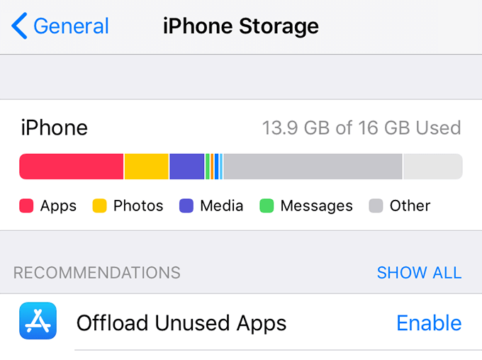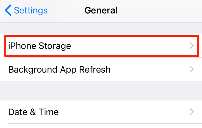- Select **iPhone Storage** on the following screen.