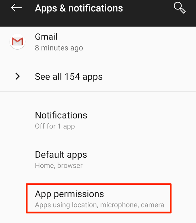 - Scroll down and select the **App permissions** option.