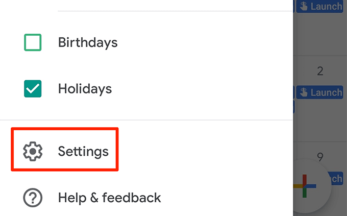 - Tap the menu icon at the top-left corner, scroll all the way down, and select Settings.