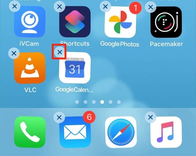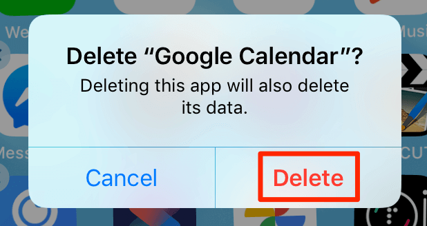 - If you’re on an iPhone, tap and hold the Calendar app and select the X icon.
