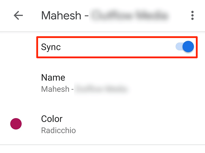 - Turn the toggle for **Sync** to the **ON** position.