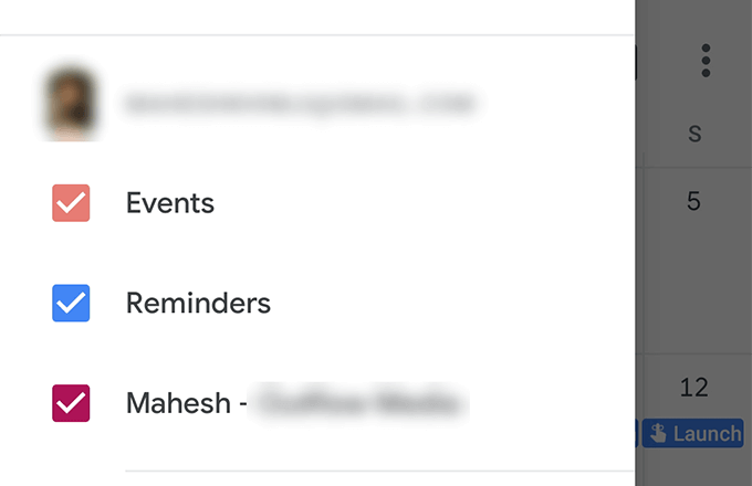 - You’ll see your Google calendars under your account name. Tick-mark the box for the calendar you want to use.