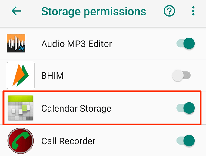On most Android phones, you have an option that lets you specify storage permissions for various apps. If this option is disabled for the Calendar app, that may be why the app isn’t syncing your calendars.