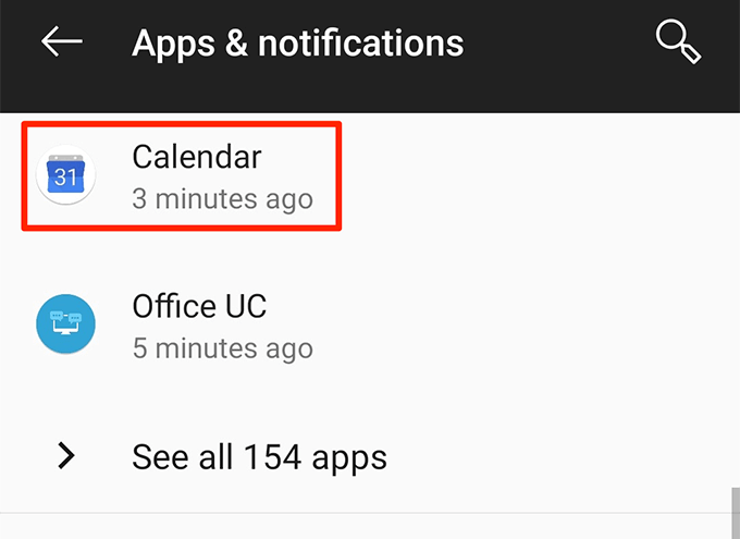 - Find the Calendar app in the list and tap it. If you don’t see it, tap See all at the bottom to view all your apps.