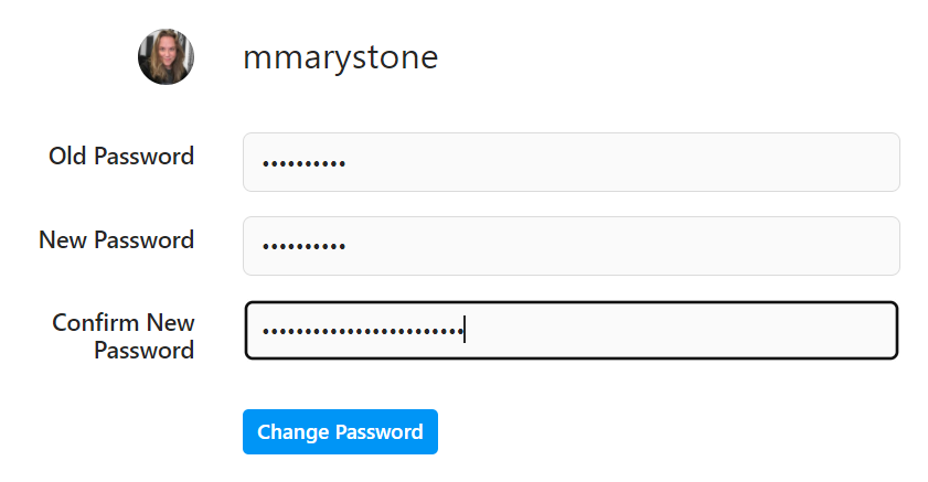 - Enter your old password, your new password, and your new password again. Then select the **Change Password** button.