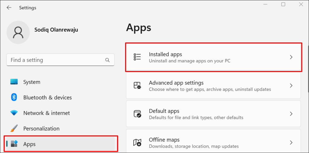 - Go to **Settings** > **Apps** and select **Installed apps**.