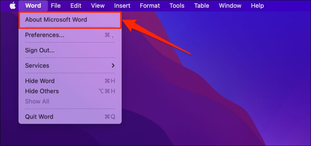 - * Open a Microsoft Office app on your Mac and select the product name on the menu bar.