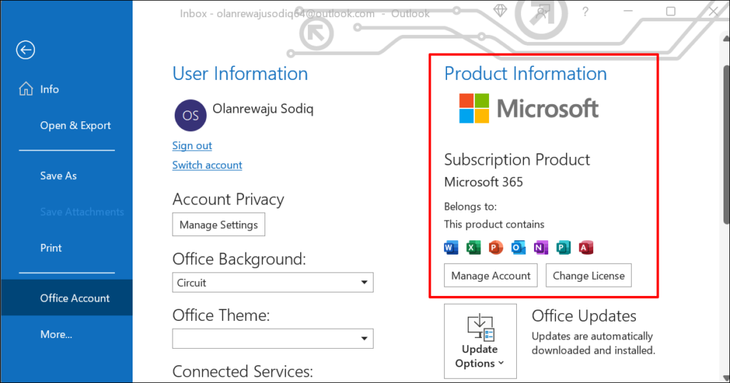 When investigating your Office apps versions in Windows, you’ll come across a string of numbers (and letters). Microsoft uses its new five-digit build number format to label most Office 365 app versions. The version information of Office apps typically has a two-digit version number and a 10-digit build number halved by a period.
