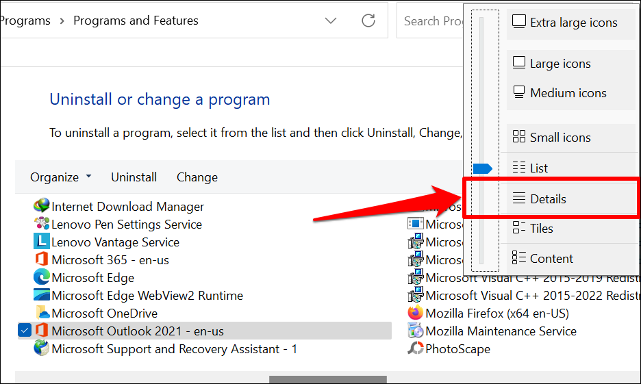 You should now be able to check the size, version, and installation date of Office apps in the Control Panel.