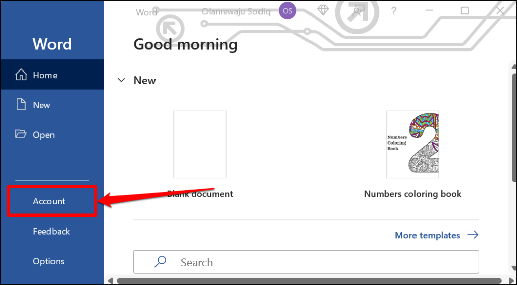 - Select **Office Account** on the sidebar.
