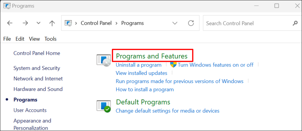 - Open the Windows Control Panel and select **Programs**.