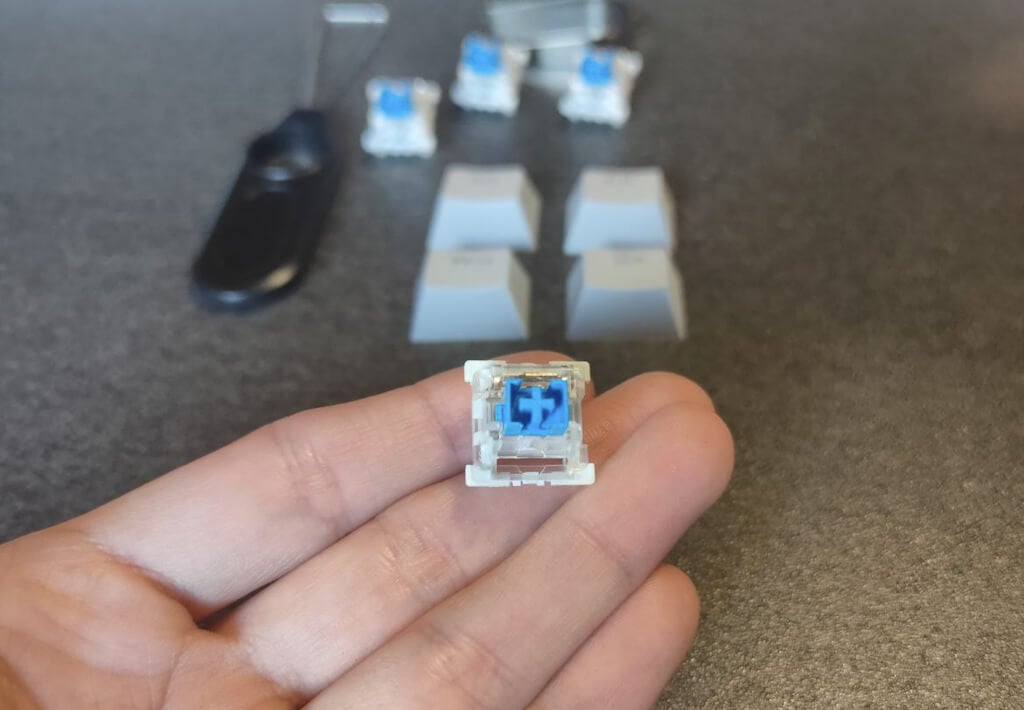 As soon as I got my hands on this keyboard, I was curious about taking out the keycaps and the switches. The best part is that you get all the tools and even some spare parts included in the package. The keycap puller tool makes it super easy to replace a keycap.