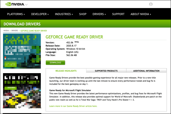 For instance, NVIDIA card owners would need to check the NVIDIA website to get the latest updates, which are often released alongside major game or hardware releases. These come with the latest bug fixes, too, which can help to solve unusual problems like high CPU usage.