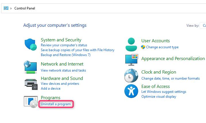 - Select Uninstall a program.