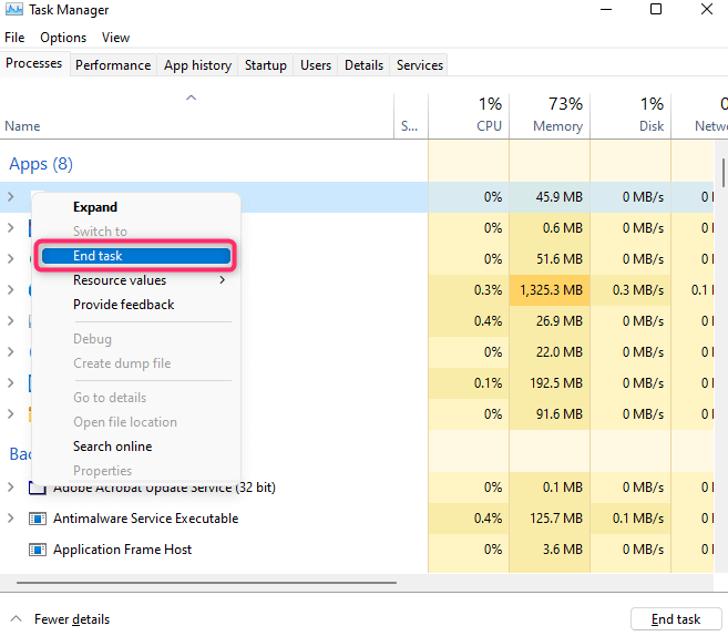 If you want to stop those apps right away, switch to the Processes tab. Right-click on all apps you want to close and select End task.