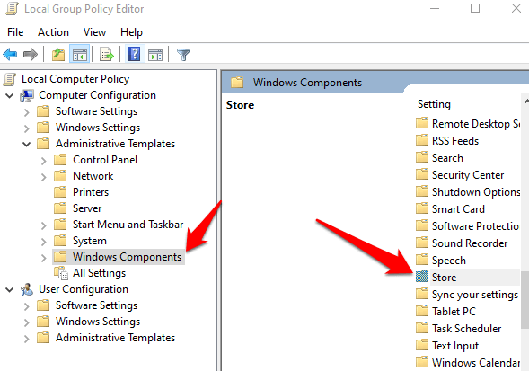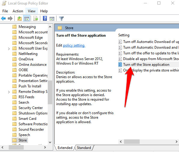 - Double-click **Store**, and then look for the **Turn off Store application** setting on the right pane.