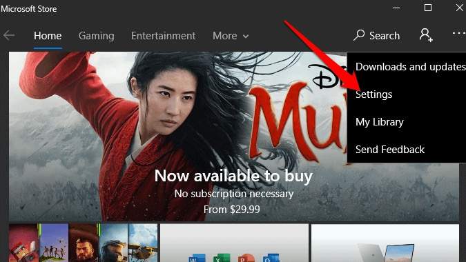 - Click the Menu on the upper right side of the Store window and select Settings.