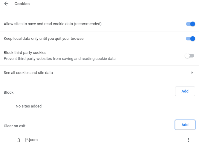 - Enable Keep local data only until you quit your browser.