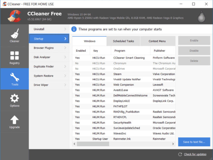 Another feature touted by CCleaner is its ability to speed up how quickly your computer starts but reducing the number of startup applications that it loads on bootup.