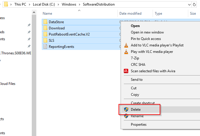 Next, open File Explorer and go to C:\ > Windows > SoftwareDistribution. Remove all the files in the folder.