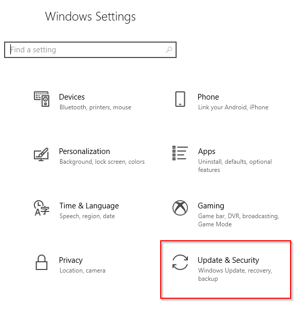Open Windows Settings and go to Update & Security.