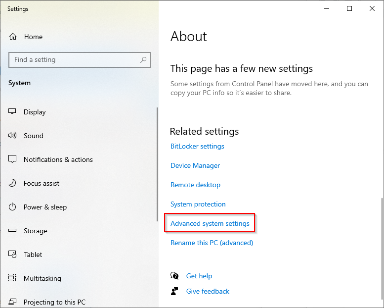 - This should launch the Settings app. Scroll to the bottom of the window and select Advanced system settings.