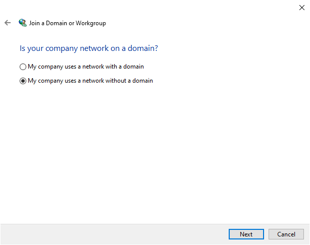 - On the next screen, select **My company uses a network without a domain**.