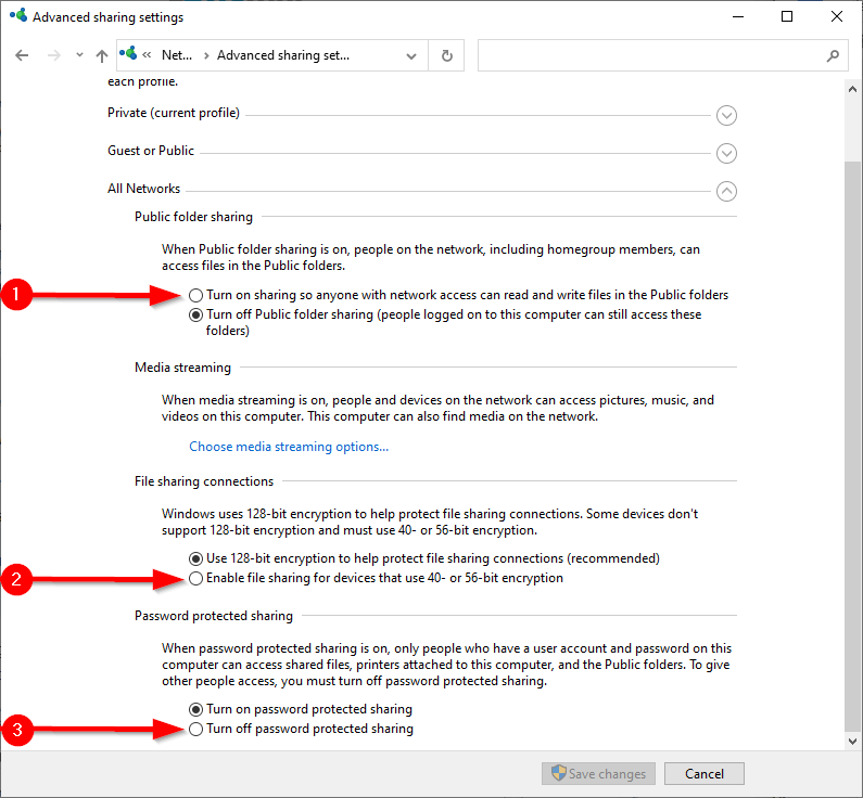 - Next, enable the following under the **All Networks** section:
