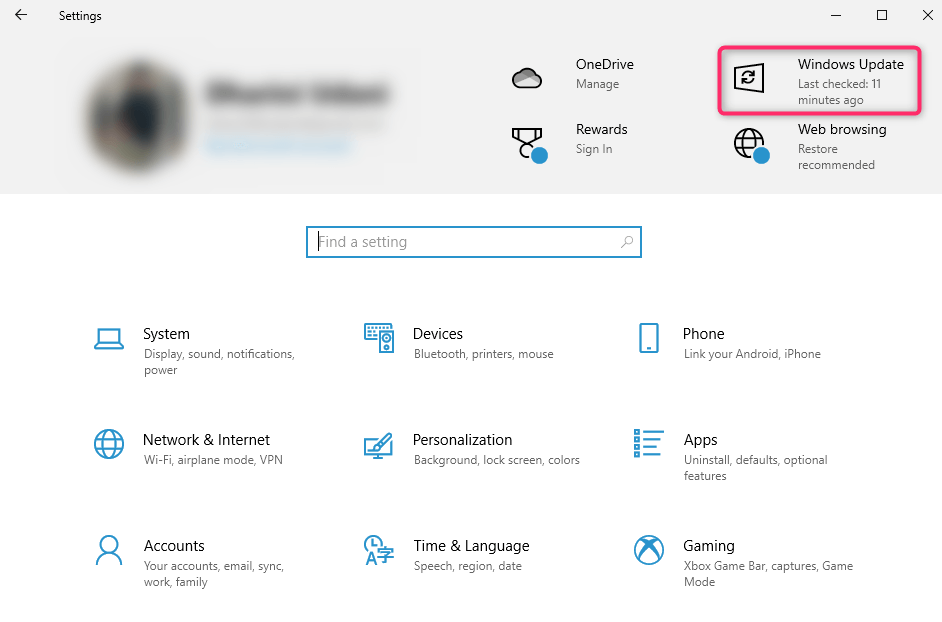 - Press **Windows Key + I **to launch the Settings app and select Update & Security.