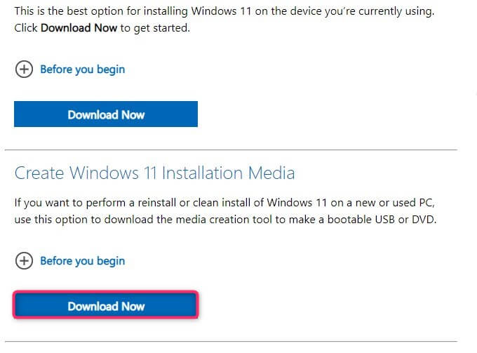 In any case, start by downloading the Windows 11 ISO. Then, burn it to a DVD or create a bootable USB drive.