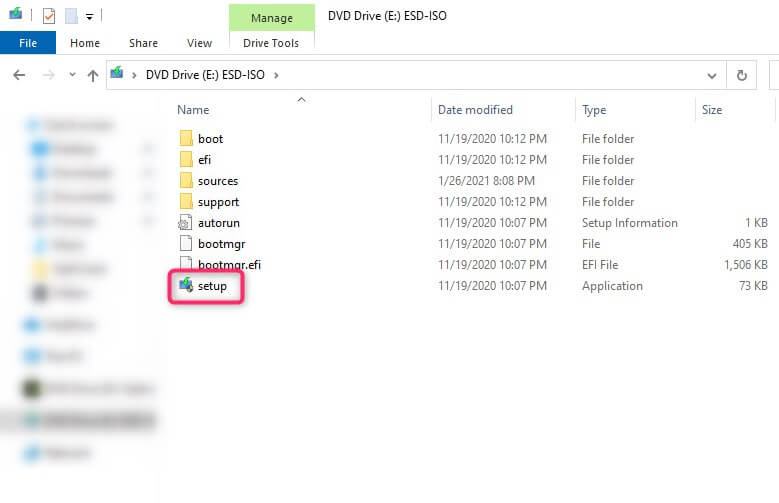 Launch File Explorer, go into the DVD drive, and double-click on setup.exe.