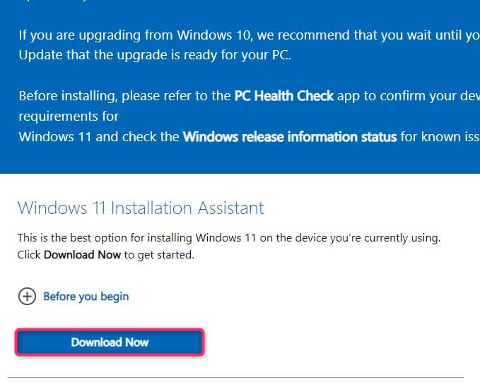 You can head to Microsoft’s website and download the Windows 11 Installation Assistant.