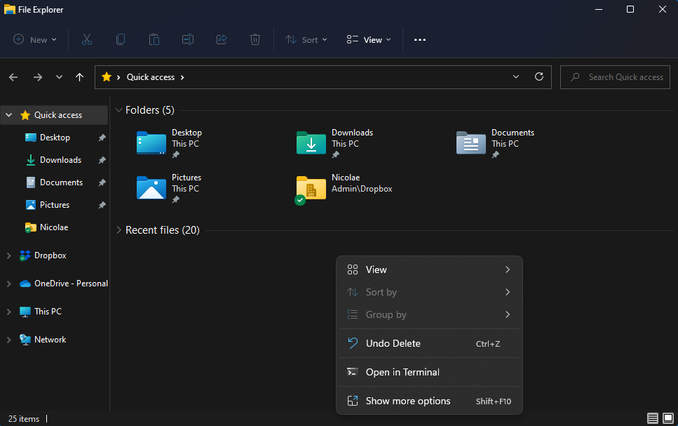Microsoft redesigned it completely for Windows 11. It looks a lot simpler and less cluttered mainly because some of the popular commands have been transformed into shortcuts. Options like Cut, Copy, and Rename are now just icons sitting at the top of the menu. For some people, these icons are too small. Fortunately, you can revisit the Windows 10 menu by clicking on Show more options or pressing the Shift+F10 shortcut. A permanent change option would be nice to have though.