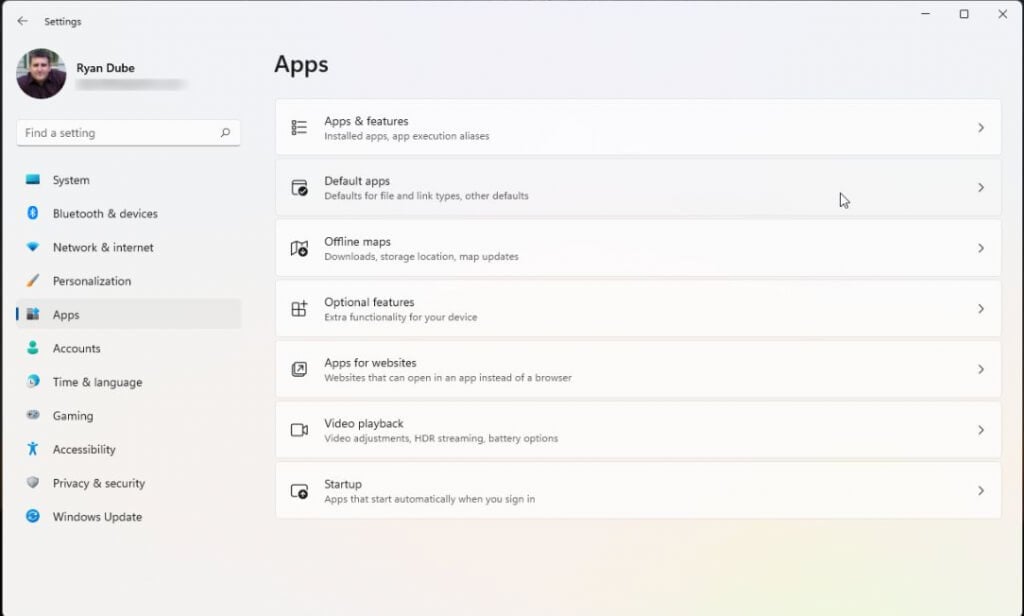 To do this, open Windows settings and select Apps from the left menu. Select Default apps from the right pane.