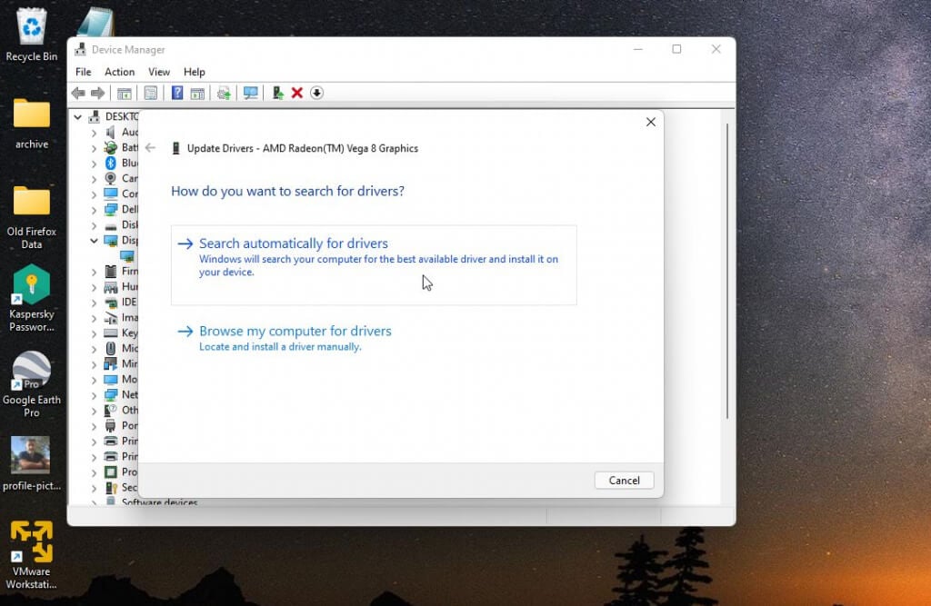 You’ll see two options to update. You can have windows search your computer for the driver you’ve downloaded, or select the Browse option to select the driver file yourself.