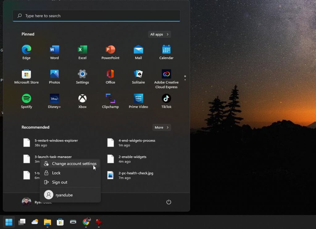 To check this, select the start menu and right-click your profile photo. Select Change account settings.