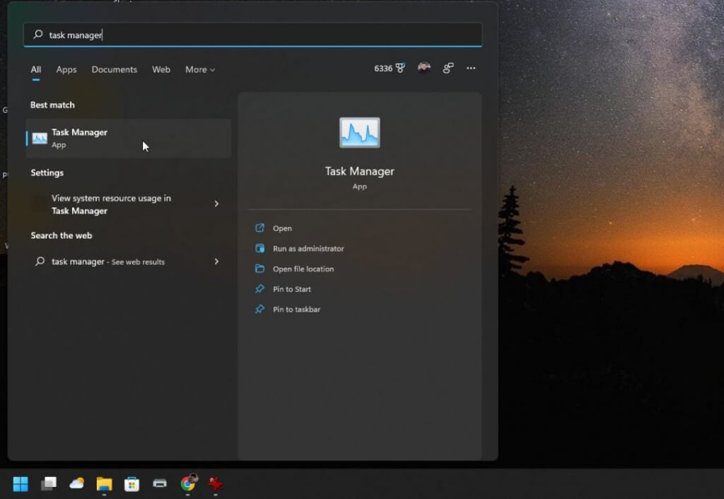 To do this, select the Start menu, type Task Manager, and select the Task Manager app.