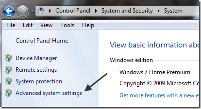 To get started, click on Start and then Control Panel. Now click on System and Security and then click on System. Finally, click on Advanced system settings. If you’re not in the category view in Control Panel, you can just click on System directly.
