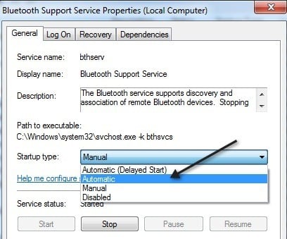 To change it to Automatic, right-click on the service and choose Properties. Then under **Startup Type **choose Automatic.