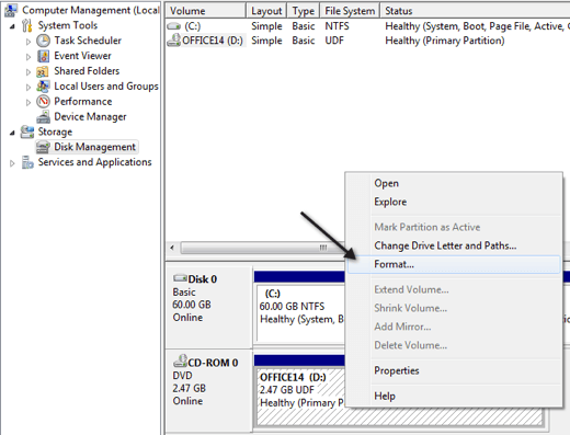 You can get to Disk Management by right-clicking on My Computer or the Computer icon in Windows 7 and clicking on Manage. Also, check out my previous post on the best file format to use when formatting USB drives.